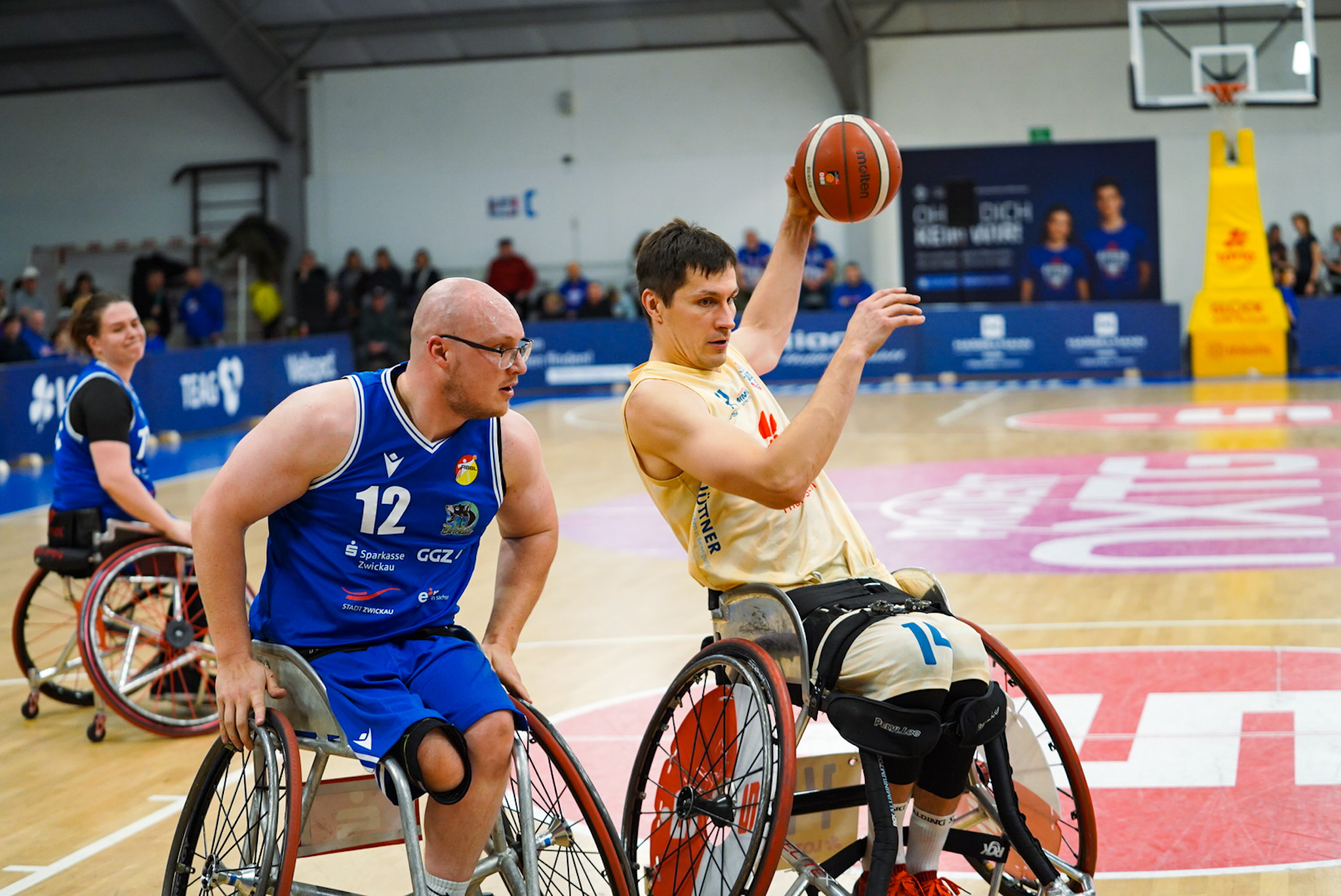 Zum Start der 2.Hälfte änderte sich das Bild nicht. Der amtierende Deutsche Meister bestimmte vor allem mit einer druckvollen Defensive das Geschehen und leitete so vielversprechende Angriffsaktionen ein. Die Punkteverteilung gestaltete sich mit zielstrebigem Mannschaftsspiel ausgeglichen. Der RB Zwickau setzte mit dem kanadischen Nationalspieler Garret Osterpchuk immer wieder punktuell Nadelstiche. In der Konsequenz blieb der Vorsprung auch nach dem 3.Spielabschnitt mit 66:29 ungefährdet.