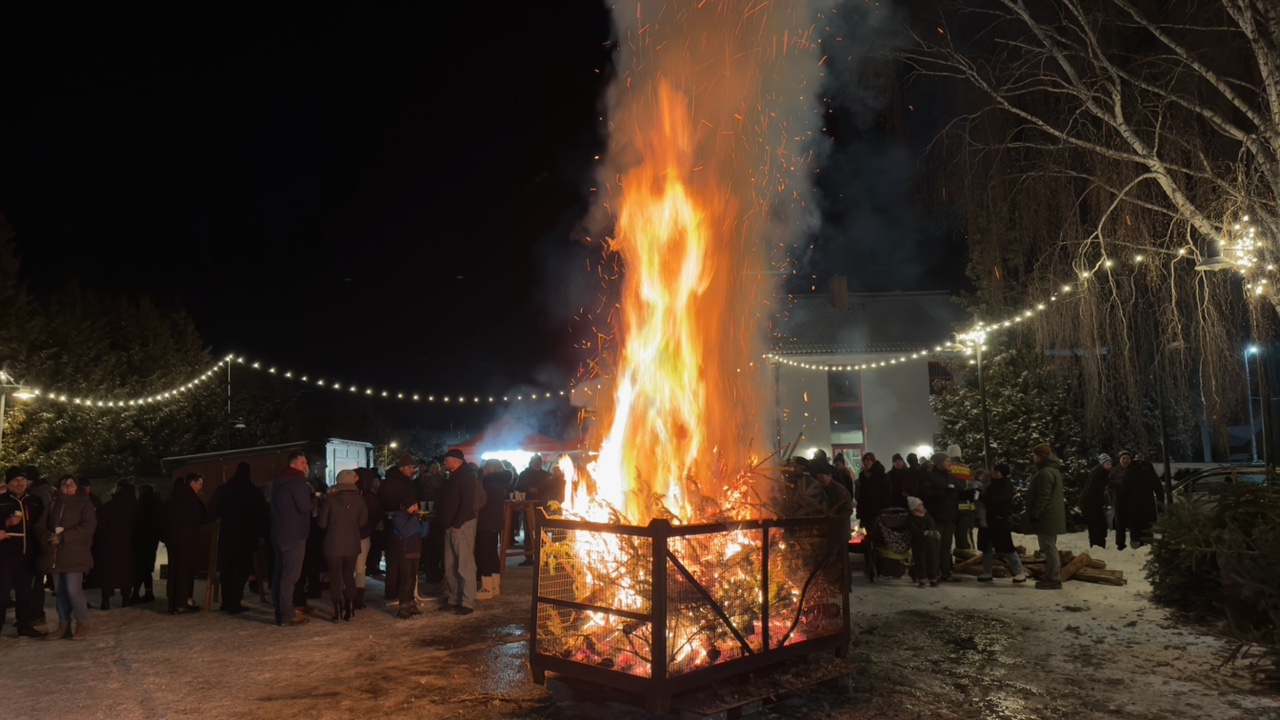 Die knistertrockenen, ausgedienten Weihnachtsbäume, gingen in imposanten Flammen auf. Kirmesburschen und Mitglieder der Freiwilligen Feuerwehr und ihres Vereins hatten sie am Morgen im Dorf eingesammelt. Bei Glühwein und frisch Gegrilltem konnte man sich – am Feuer wärmend – treffen, unterhalten, Gemeinsamkeit genießen. Besonders schön war das Winterwetter, das das schöne Flair des Festes unterstrich. Viele Gäste konnten die Veranstalter begrüßen.