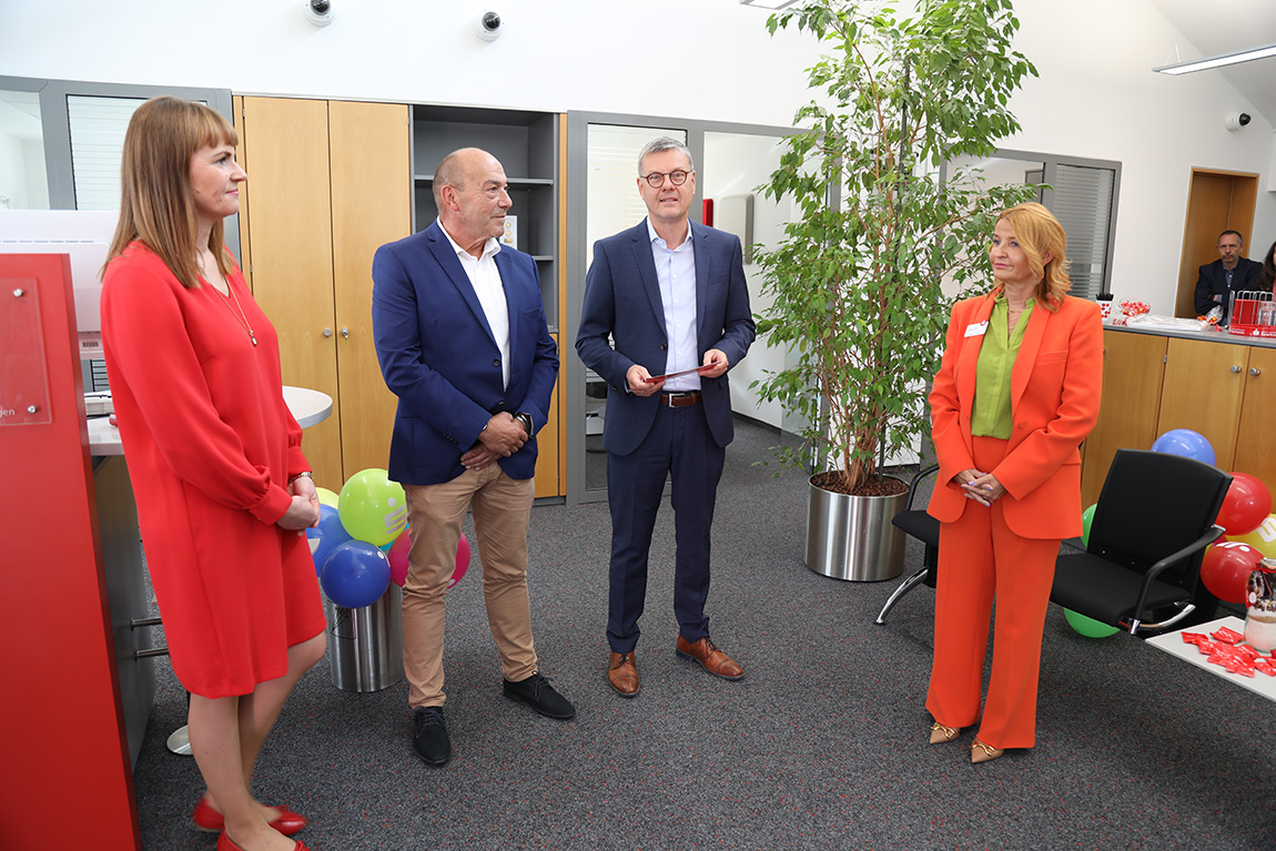Knapp 11 Monate später – am heutigen Freitag – eröffnete die Filiale neu. Selbstverständlich ist das nicht, vielmehr ein eindeutiges Bekenntnis der Sparkasse Mittelthüringen zum Standort Elxleben. In den vergangenen Jahren bereinigten viele Banken ihr Filialnetz, u.a. weil Kunden ihre Bankgeschäfte oft online erledigen. Auch die Sparkasse verschlankte ihr Netz.