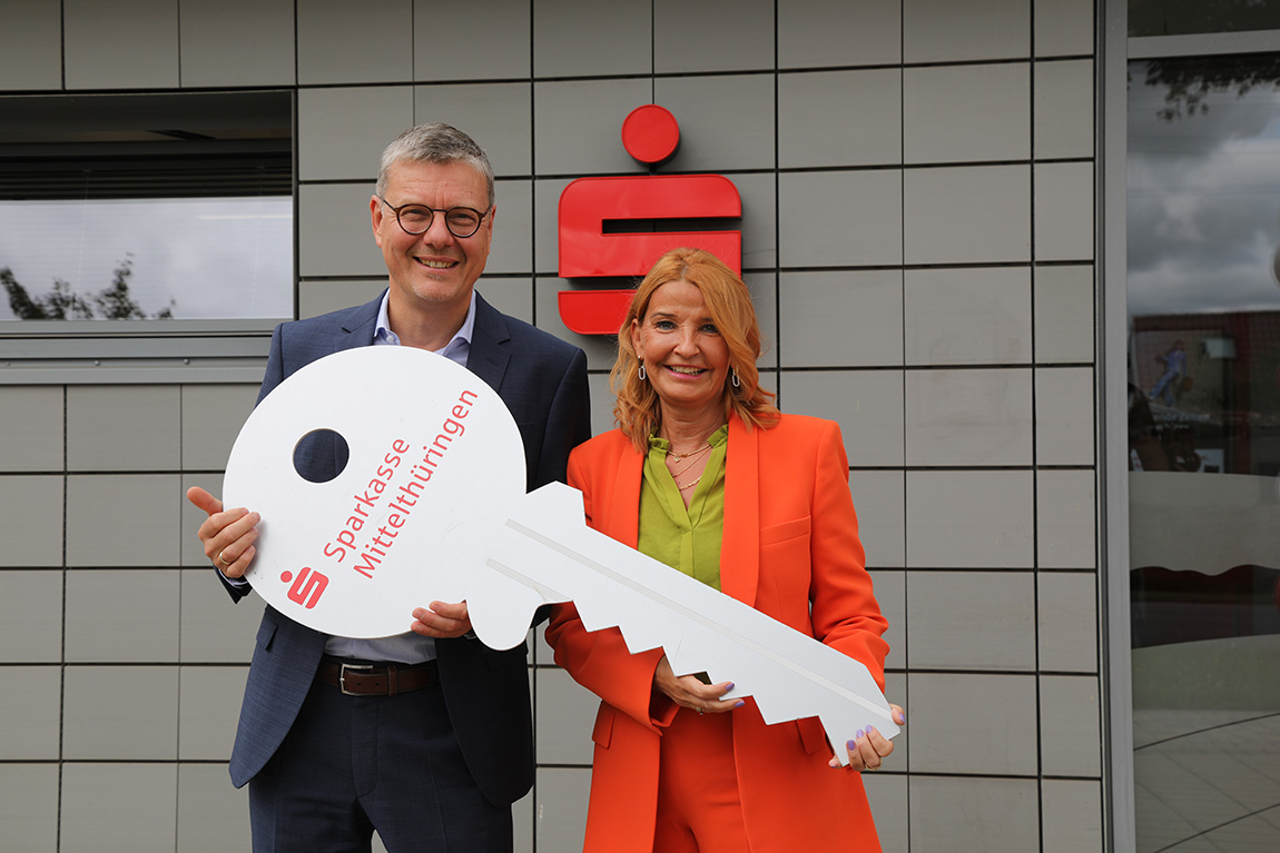 Yvonne Linse dankte anlässlich der Neueröffnung vor allem den Kunden, die Geduld und Verständnis aufbrachten und dem siebenköpfigen Mitarbeiter-Team die Treue hielten. Übergangsweise war die Filiale in Räumen der Agrargesellschaft untergebracht, zudem hatte die benachbarte Volksbank Thüringen Mitte den Sparkassenkunden die kostenlose Nutzung der Geldausgabeautomaten ermöglicht.