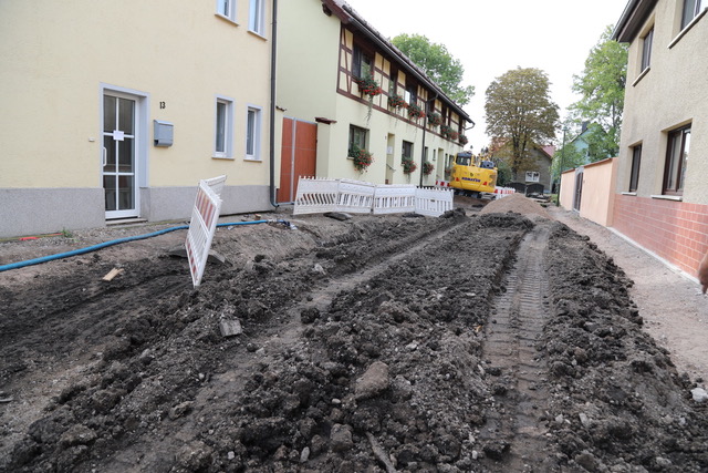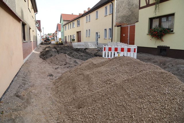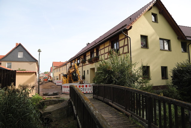 Die Bauarbeiten schreiten gut voran. „Jeden Tag wird hier gearbeitet, es gibt keinen Stillstand.“, lobt Hans Vollrath die bauausführende Firma Bauer Bauunternehmen aus Walschleben. Das Finish wird ein attraktives Altstadtpflaster sein. Wenn die Baumaßnahme gegen Ende des Jahres abgeschlossen sein wird, wird nicht nur die Funktionalität nach heutigen Standards bestens hergestellt, sondern auch die Attraktivität der Straße aufwertet sein.