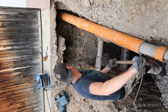 Schwierige Hausanschlussarbeiten führen die Mitarbeiter von Bauer Bauunternehmen, wenn erforderlich, auch von Hand aus.