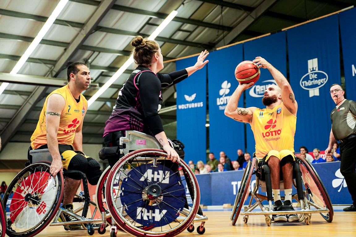 Für die Thuringia Bulls spielten: Hubert Hager (4 Punkte), Vahid Azad (4), Jordi Ruiz (10), Jens Albrecht (2), Karlis Podnieks, Alex Halouski (15), Arie Twigt, Marie Kier und Joakim Linden (29).