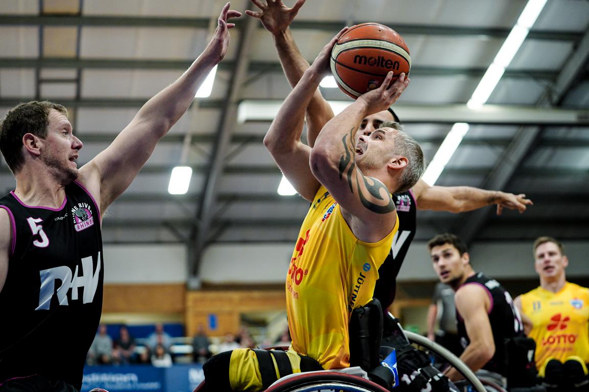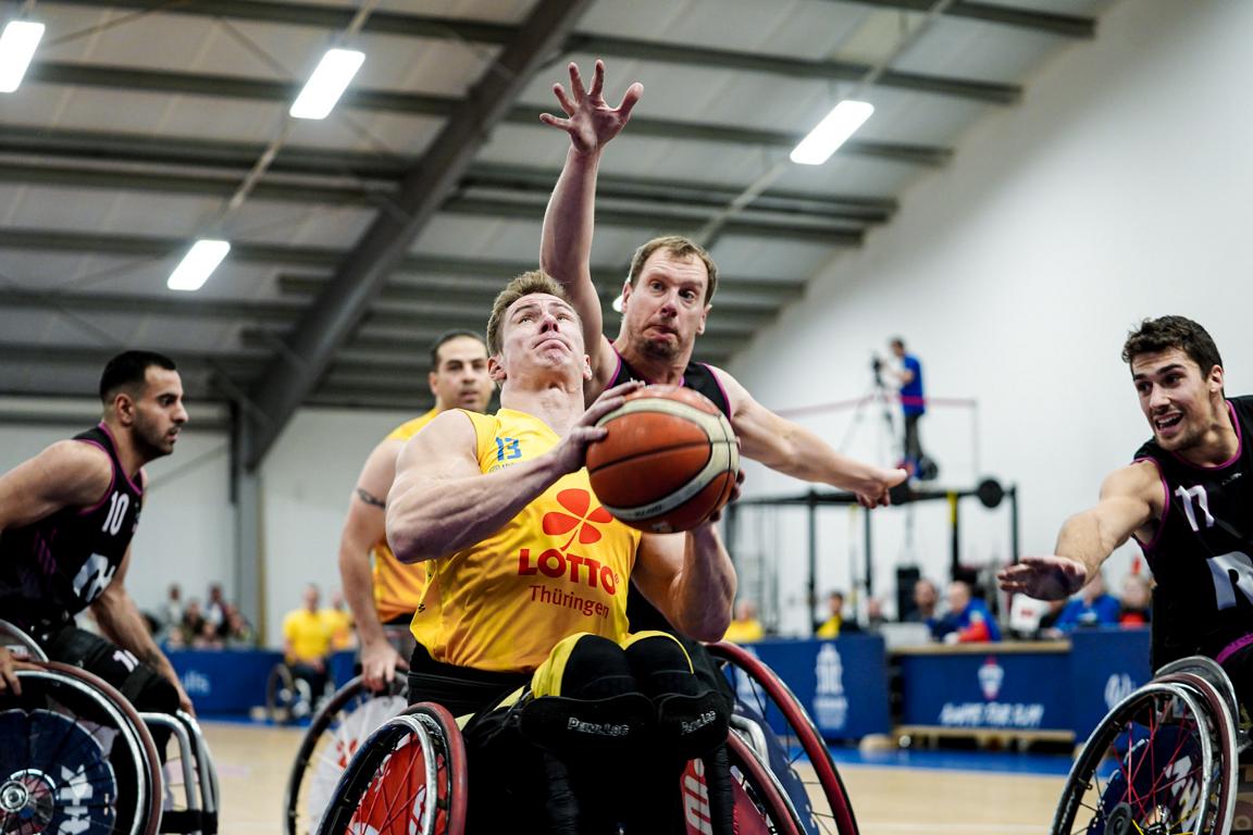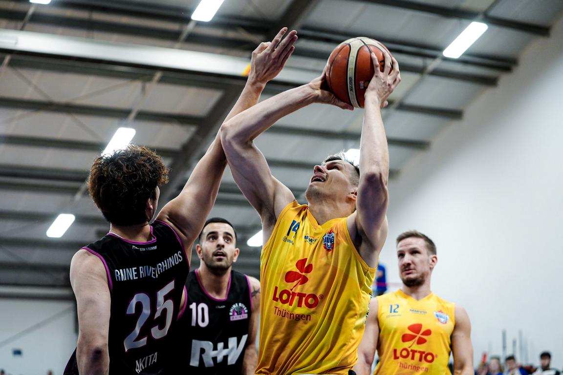 Es war die angekündigte Bewährungsprobe für die Thuringia Bulls gegen die Rhine River Rhinos. Beide Teams waren bisher noch ungeschlagen und schenkten sich von Beginn an nichts. Die Wiesbadener versuchten, den Spielfluss der Thüringer zu stören. Obwohl die Bulls sich gute Würfe erarbeiteten, gelang es ihnen nicht, diese Versuche in Punkte umzumünzen.