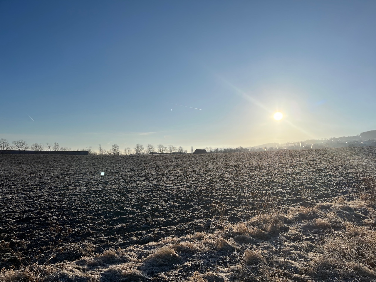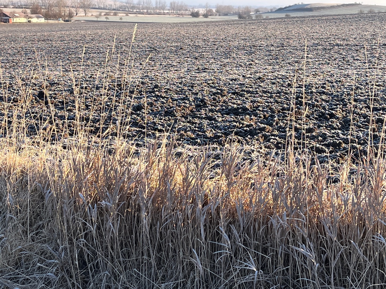 Sonntag Morgen. Sonne, Frost und Raureif. Wir nutzen das wunderbare Wetter für einen Spaziergang über die Felder nahe Witterda. Unsere Kamera erfasst die glitzernden Eiskristalle auf Wiesen, an Bäumen und Sträuchern.