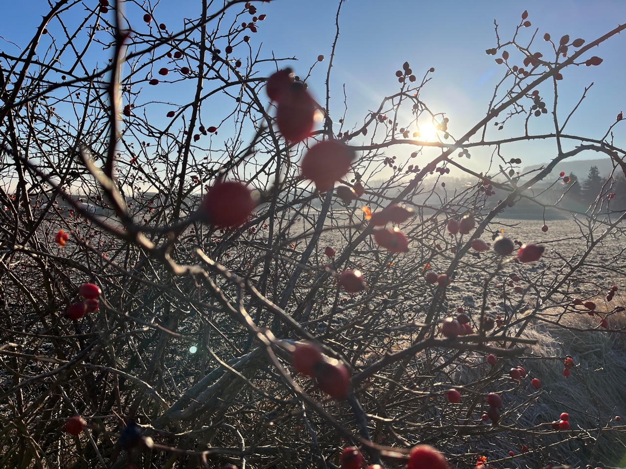 Also Raureif oder nur Reif – wir haben wieder etwas gelernt, obgleich uns eigentlich nur der tolle Effekt glitzernder Eiskristalle in der Sonne wichtig ist, der uns so schön in den sonnigen Tag begleitet.
