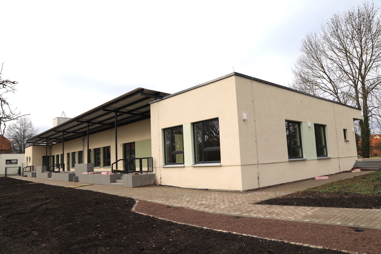Nur Kleinigkeiten fehlen noch bis der Neubau der Kinderkrippe als Teil der Kindertagesstätte „Anne Frank“ in Elxleben von den Knirpsen und Erzieherinnen in Besitz genommen werden kann. Zaunelemente und Teile des Geländers an der überdachten Terrasse sind noch zu installieren, ebenso die Beschattungsanlage.