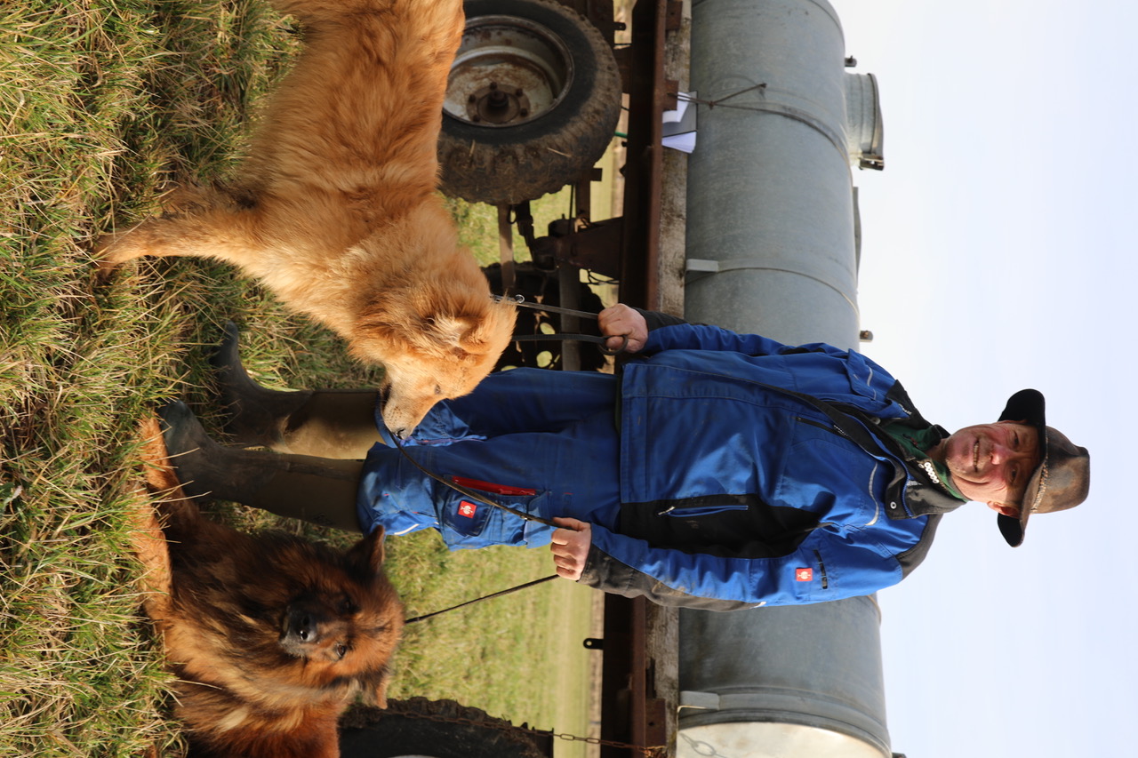 In dritter Generation sind die Schäfers Schäfer, seit 1979 übt Andreas den Beruf aus. Seine Ausbildung hat er einst in der LPG Molschleben absolviert und danach dort gearbeitet. 4.000 Schafe galt es dort großzuziehen, zu hüten, zu ernähren und schließlich zu „verwerten“. Nach der Armee-Zeit, die zeitlich ziemlich genau mit dem Ende der DDR zusammenfiel, machte sich Andreas Schäfer selbständig. Seit 1991 ist er „auf Wanderschaft“. Im Sommer wird gehütet, resp. gewandert. Dann gibt es keine Elektrozäune, sondern nur den Schäfer und seine Herde. Und seine treuen Begleiter und Gehilfen: Die beiden Harzer Füchse, eine Altdeutsche Hütehundrasse, Ben (erst sieben Monate alt und noch in der Ausbildung) und Rex, fünf Jahre alt. Sie halten die Herde zusammen, unterstützen den Schäfer, wenn es gilt, dass keines der Tiere ausbüxt oder angegriffen wird.