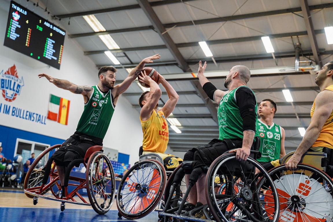 Die Thuringia Bulls erspielten sich durch eine disziplinierte Verteidigung gegen Santo Stefano eine 32:17-Führung zur Halbzeit. Die Italiener gaben, angeführt von Sabri Bedzetti, nicht auf. Punkt für Punkt schmolz der Vorsprung auf 5 Zähler (36. Minute: 53:48). Doch Vahid Azad agierte als Fels in der Brandung und beendete den Nervenkitzel mit einem Happy End. Marie Kier und Joakim Linden wurden für ihre Performance, stellvertretend für das gesamte Team, für das All-Star Team nominiert.