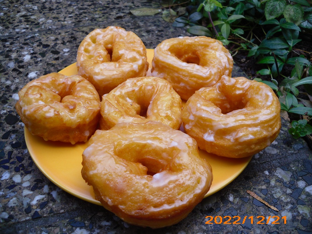 Eier nacheinander unterrühren, in einen Spritzbeutel einfüllen, Ringe auf Backpapier ( 8 cm x 8 cm) spritzen und diese (mit dem Backpapier) in das heiße Öl geben, auf mittlerer Hitze die Spritzkuchen von beiden Seiten goldgelb frittieren (ca. 3-4 Minuten pro Seite), beim Umdrehen das Papier vorsichtig entfernen.