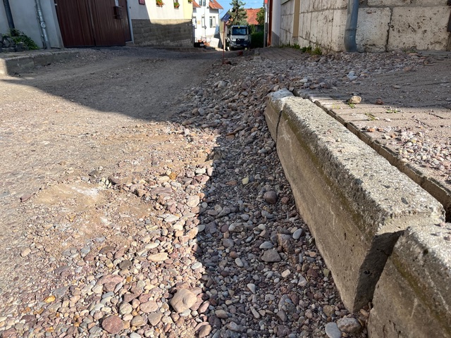 Vor wenigen Wochen hat der Gemeinderat zudem beschlossen, auch die Nebenanlagen, also Gehwege, Grünflächen, Grundstückseinfahrten und Straßenbeleuchtung grundhaft auszubauen. Dabei ging man in der Planung sehr sensibel vor, diskutierte im Gemeinderat bestmögliche Varianten für die Anlieger. Das Unterfangen ist aufgrund sehr enger räumlicher Verhältnisse, des starken Gefälles der Straße nicht einfach umsetzen, betrachtet man auch die Eventualitäten bei starkem Regen, um eine gute Positionierung der Abflüsse zu erreichen.
