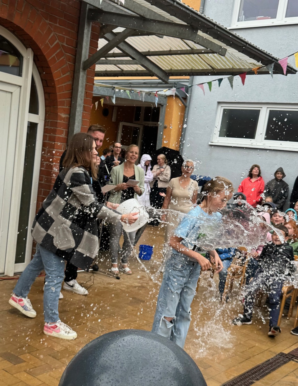 Auch die Lehrer und Pädagogen werden getauft. Alles in allem war da viel Wasser im Spiel. Nicht zuletzt, weil viele Kinder z.B. der Klasse 4c diesen wichtigen Abschnitt ihres Lebens weinend um ihre Lehrerin Joelle Wäldchen beendeten. Viele Emotionen, viele Erinnerungen an diesen Tag werden bleiben. Sie waren prägend für alle Beteiligten.