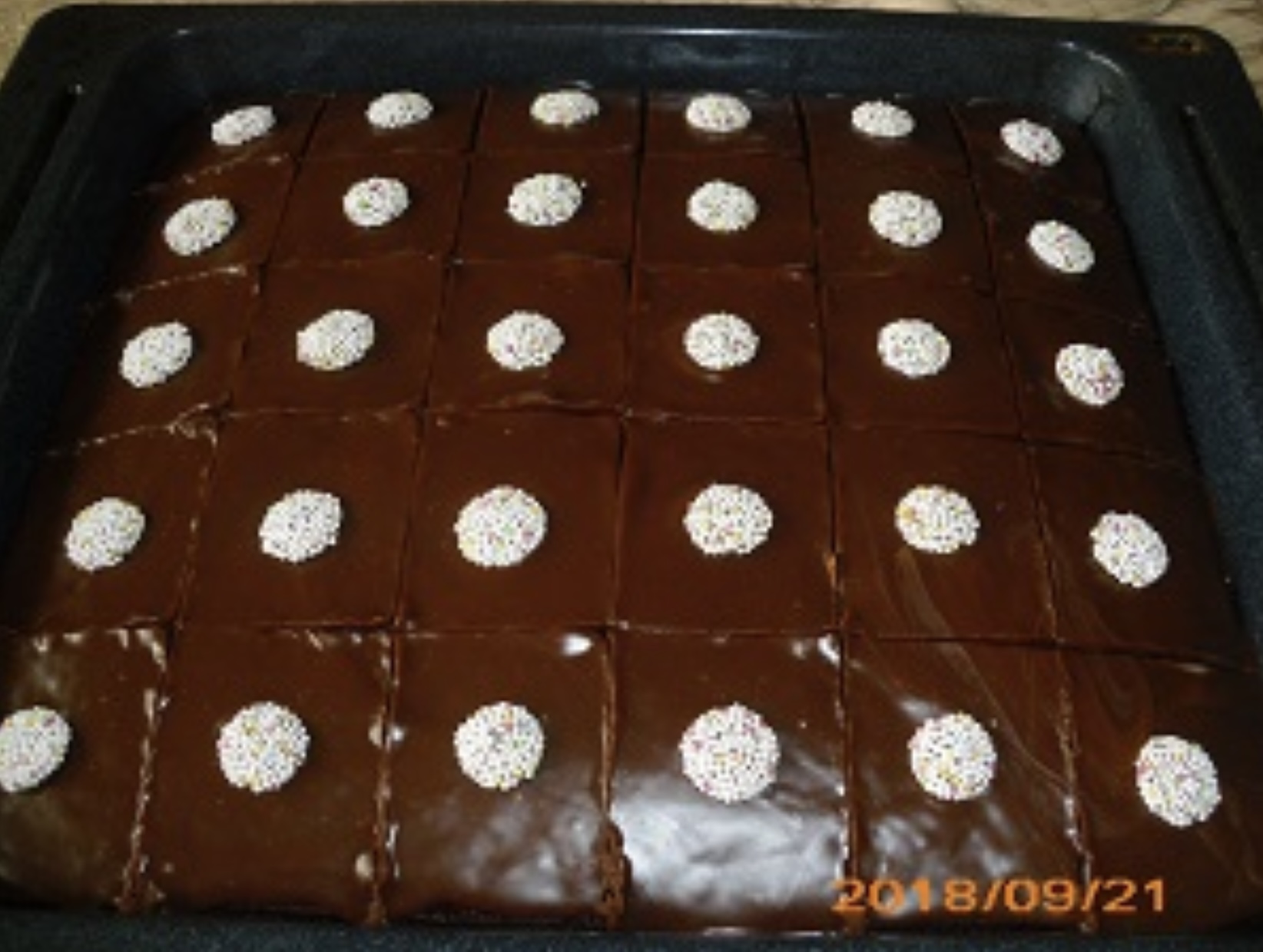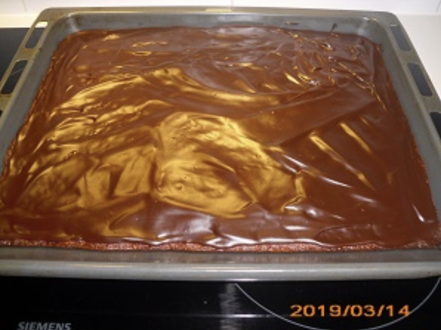 Oder ich nehme ein Blech 29x32cm und mache eine Ganache auf den ausgekühlten Kuchen.
