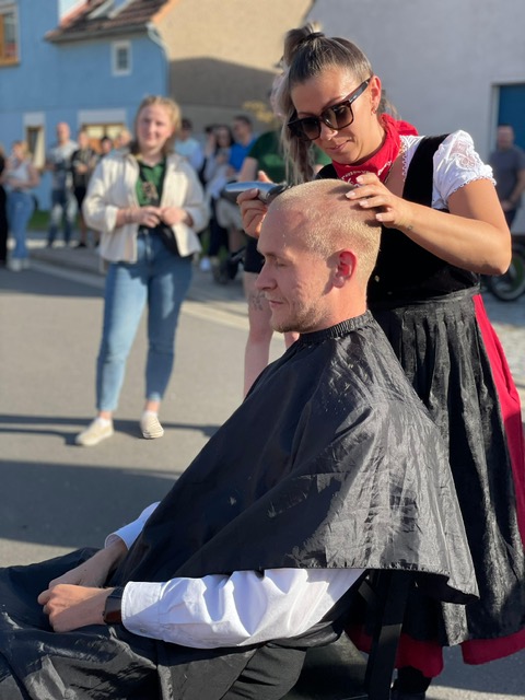 Die Frage stand im Raum – genauer gesagt im Saal – ob sich alle Elxlebener Kirmesburschen würden eine Glatze schneiden lassen oder, falls nicht, wenigstens drei von ihnen und zusätzlich 2.500 Euro an Spenden sammeln könnten für die Hilfe an Krebs erkrankter Kinder. Dass die attraktiven jungen Männer ihre Haarpracht nur teilweise (mit sehr kurzen Haarschnitten) opferten und lieber das Geld für kranke Kinder bzw. deren Familien aufbrachten, ist aller Ehre wert.