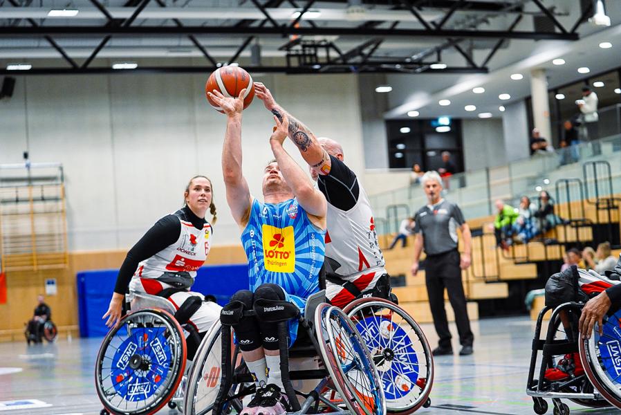 Zu ihrem ersten Auswärtsspiel des Saison in Trier starteten die Rollstuhlbasketballer der Thuringia Bulls fulminant in das Spiel.