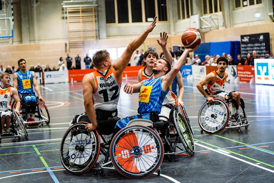 Beide Teams bemühen sich, in der Offensive die Bälle im gegnerischen Korb unterzubringen und sich gegen starke Verteidigung durchzusetzen. Für die Bulls ist es vor der Halbzeit vor allem Jordi Ruiz, der als Vollstrecker mit 20 Punkten glänzt. Die Gastgeber bemühen sich, McHugh unter den Korb zu bekommen und Alexander Budde hat es ziemlich schwer, sich gegen die Defence der Bulls durchzusetzen.