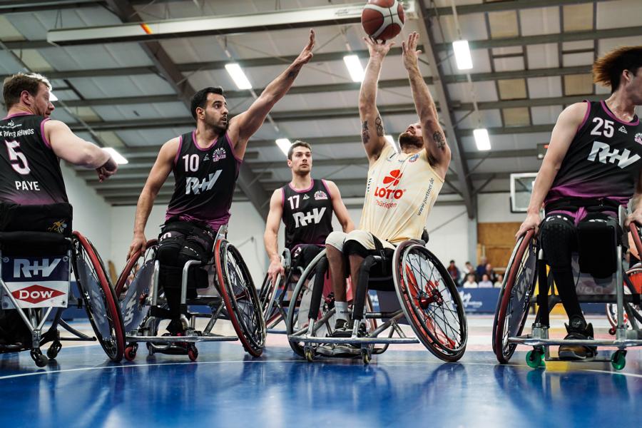 Am vergangenen Samstag waren die Rhine River Rhinos zu Gast im „Bullenstall“. Damit konnten sich die Zuschauer auf ein wahres Topspiel freuen, denn die Wiesbadener sind in den letzten Jahren eine feste Größe im deutschen Rollstuhlbasketball geworden.