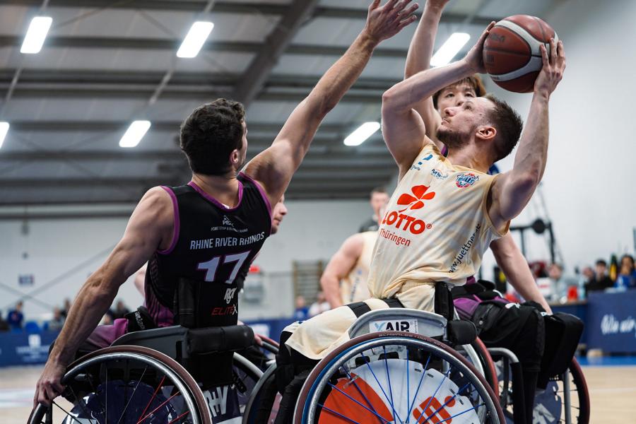 Die RSB Thuringia Bulls gewinnen souverän mit 75:46 gegen die Rhine River Rhinos und bleiben somit ungeschlagen (19:9; 20:14; 16:15; 20:8).