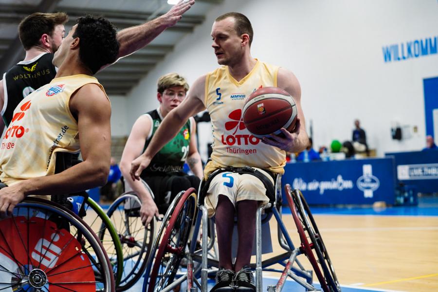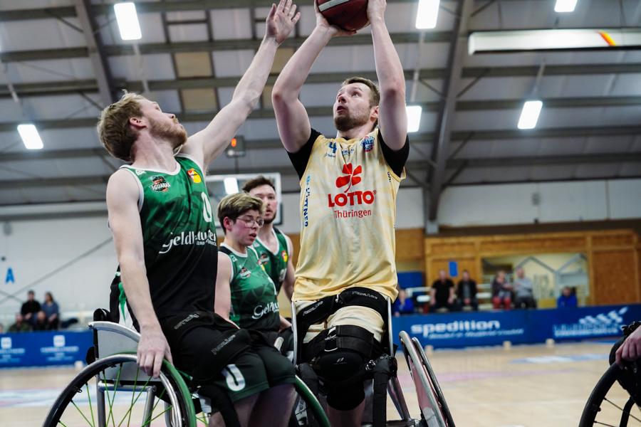 Die Thüringer starteten gut ins Spiel. Vahid Azad netzte vier schnelle Punkte ein. Auch München zeigte früh eine konzentrierte Leistung in der Offensive. Die Bayern bekamen keinen Zugriff auf die Schützen der Bullen. Zum einen erzielten Halouski und Ruiz Punkte aus der Distanz, zum anderen attackierten Azad und Hager immer wieder erfolgreich die Zone. So konnten sich die Hausherren früh einen Vorsprung erspielen. Zur ersten Viertelpause führten die Thüringer mit 28:12.