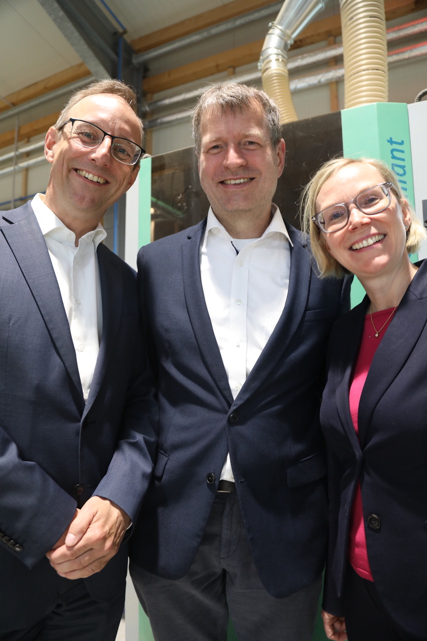 René Heinemann (Mitte) mit Bankberater Heyer und Vorstand Dr. Christina Klee