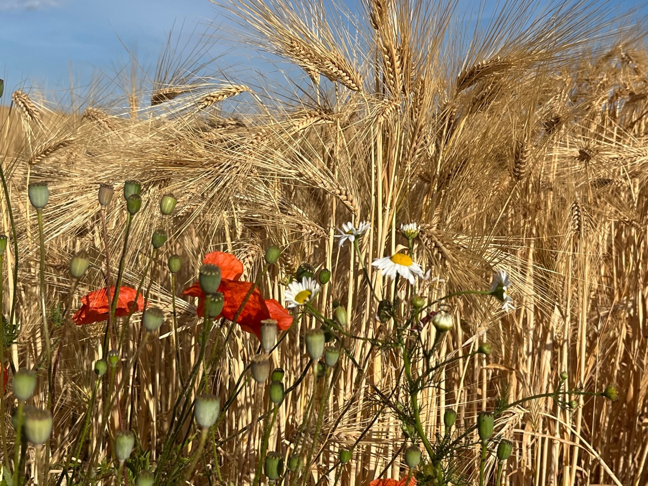 Es ist Juli. Wir genießen die langen Tage – noch. Allmählich verlängern sich die Nächte. Rosen blühen, Beeren sind reif, auch das Korn.