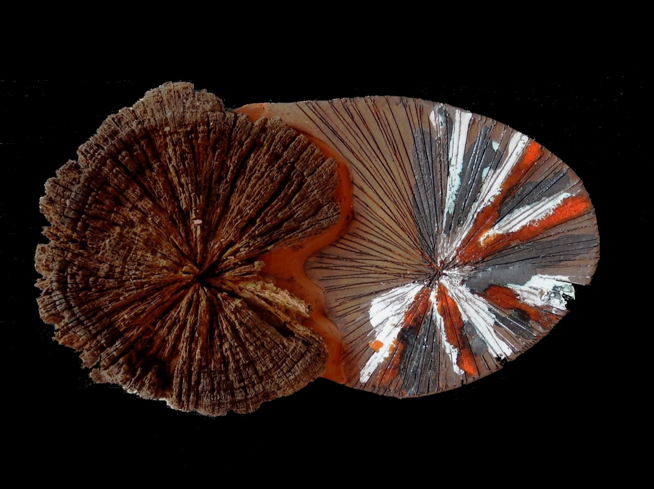Das Strömen des Wassers sowie Wind und Sonne verändern das Holz, hinterlassen Veränderungen, veränderte Oberflächen – vornehmlich bleiben nur die harten Holzanteile zurück. Darin besteht für den Künstler der besondere Reiz. Diese ent­stan­denen hölzernen Strukturen interessieren ihn; dem Zufall sei dabei durch­aus weiter Raum eingeräumt. Passend für dieses Holz versucht er, Keramiken zu schaf­fen, die in Größe, Form und Färbung mit dem toten Holz eine ästhetische Einheit bilden. Die Keramik wird am Ende auf das Holz montiert.