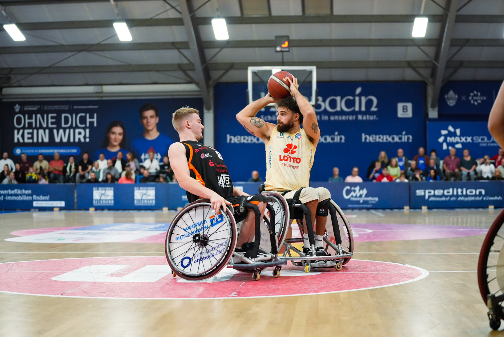 Am ersten Spieltag der Rollstuhlbasketball-Liga nach der Sommerpause war die Halle in Elxleben ausverkauft. Erst im Oktober waren die Europameisterschaften ausgetragen worden, weswegen sich der Saisonstart verschob.