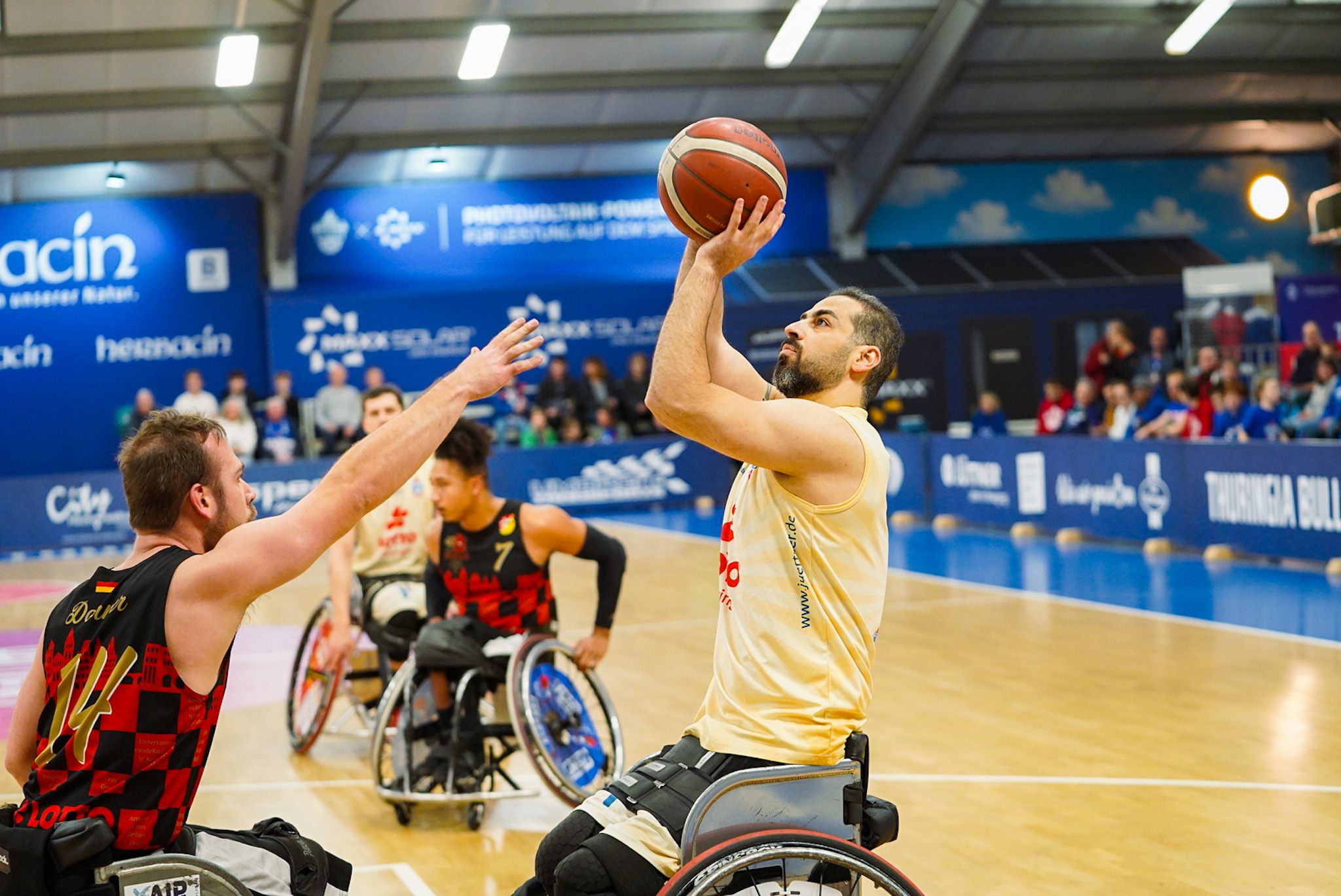 Zum Start des zweiten Durchgangs drückten die Gastgeber etwas auf die Tube. Ein „And-One“ von Jordi Ruiz stellte die erste zweistellige Führung her (28:18, 13. Minute). Diesem Sturm und Drang stellte sich vor allem Dirk Passiwan mit seiner ganzen Klasse entgegen und hielt sein Team im Spiel (39:26, 17. Minute). Ein kleiner Zwischenspurt der Hausherren vergrößerte die Distanz nochmals auf 48:30 zur Halbzeit.