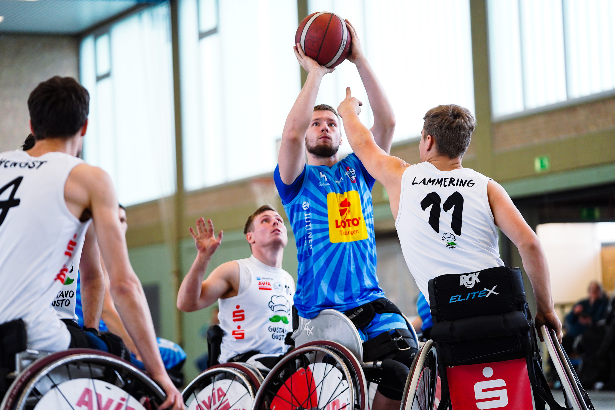 Die Bulls sichern sich durch einen 77:63 Auswärtserfolg beim BBC Münsterland die beste Ausgangsposition für die Playoffs (20:17, 26:15, 17:15, 14:16). Für die Thuringia Bulls ging es am 17. Spieltag in der RBBL in erster Linie um die beste Ausgangslage in den Playoffs. Immer noch ungeschlagen, machten sich die Thüringer ohne ihren Topscorer Alex Halouski auf die Reise ins Münsterland. Der BBC musste weiterhin auf Ausnahmeathletin Mariska Beijer verzichten und wollte dennoch die letzte Chance auf die KO-Runde wahren.
