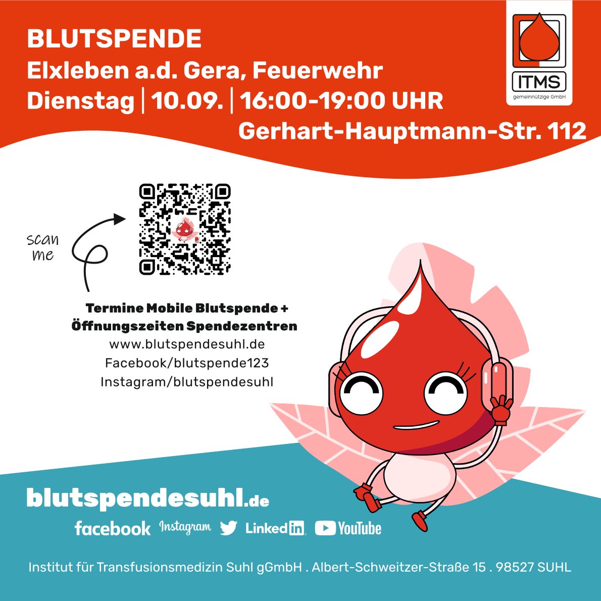 Der Freiwilligen Feuerwehr ist es gelungen, wieder ein Blutspendeteam nach Elxleben zu holen. „Nun liegt es an Euch die Spenderzahlen hoch zu halten, teilt den Termin allen Bekannten, Verwandten und Freunden mit.“, wünscht sich Ortsbrandmeister Andreas Wenzel im Namen der Kameradinnen und Kameraden, die die Spende seit jeher mit großem Engagement unterstützen.