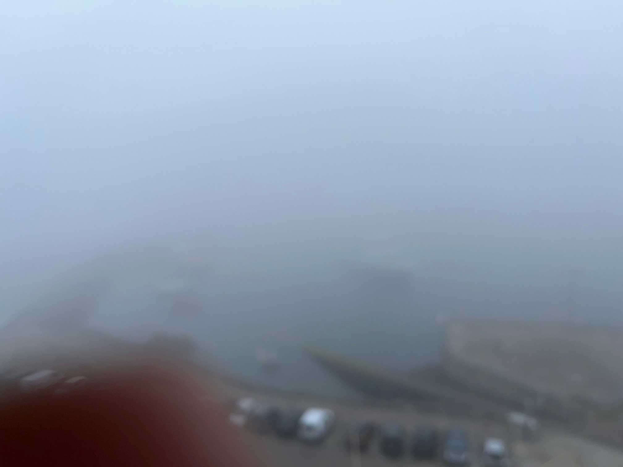 Als ich, zunächst vertieft ins Gespräch, wenige Minuten später aus dem Fenster blicke, hat sich ein Nebel über Hafen und Landschaft gebreitet – eine Optik wie im November. Solch ein Wetterphänomen war mir bei den letzten beiden Aufenthalten, ebenfalls jeweils im August, noch nicht begegnet. Das kenne ich lediglich aus San Francisco, wo die Golden Gate-Bridge oft im Nebel verschwindet.