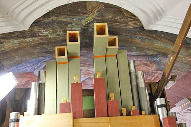 Aber auch an Tragwerk, Mechanik und Blasebalg hat die Zeit deutliche Spuren hinterlassen und sie mussten in weiten Teilen erneuert werden. Nicht zuletzt galt es, das Dach abzudichten, damit künftig Flugschnee und Nässe die Orgel nicht beschädigen können.