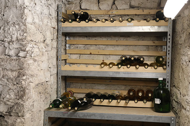 Letzte Flaschen selbstgekelterten Weines, der neue Rebensaft wird in Kürze die Regale füllen.