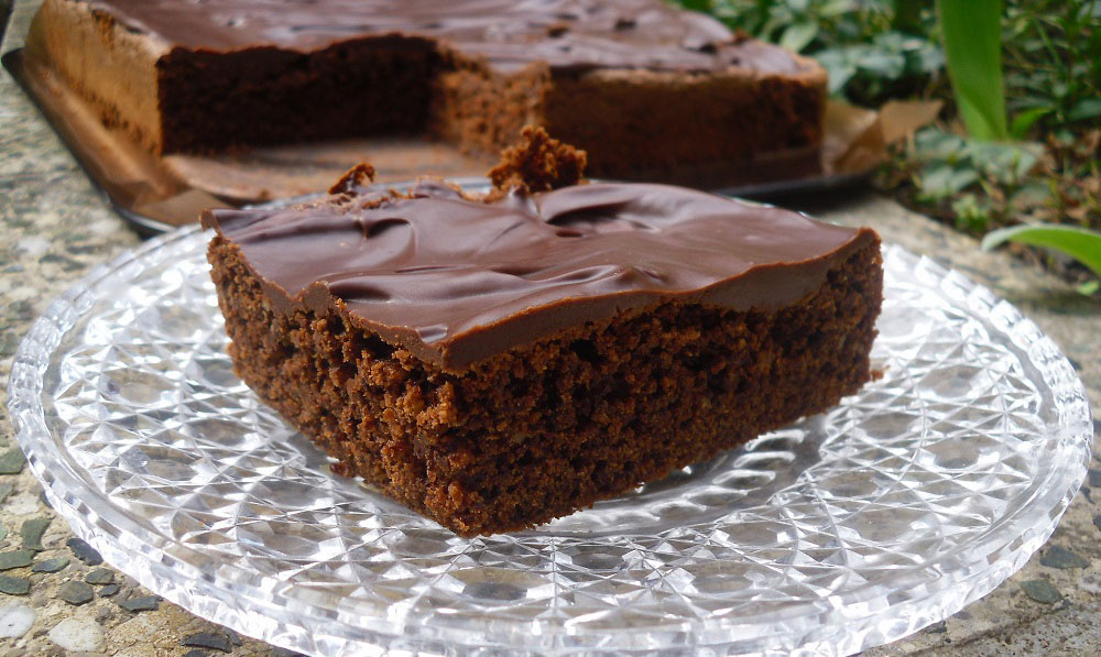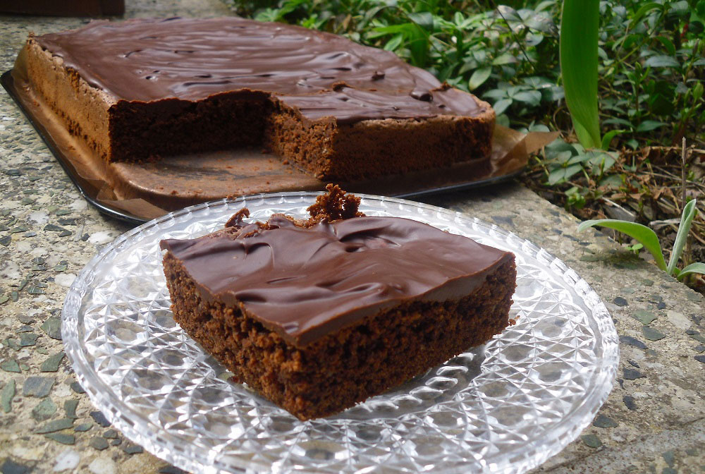 Teig: 4 Eier, 2 Vanillezucker, 190g Zucker, 1 Pr Salz, 190g zerlassene Butter, 200g Zartbitterschokolade, 200g gemahlene Nüsse, 190g Mehl, 1 BP, 1/4TL Natron